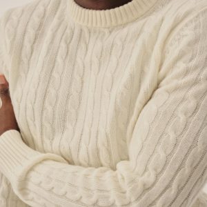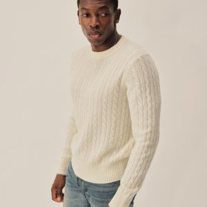 The California Cashmere Cable Crew is spun from 100% long-staple cashmere and knit in a refined 12-gauge cable pattern. Inspired by the casual poise of 1960s Ivy League sweaters, it’s finished with yarn-dyed ribbing at the neck, cuffs, and hem, and garment-rinsed for a soft, lived-in feel.