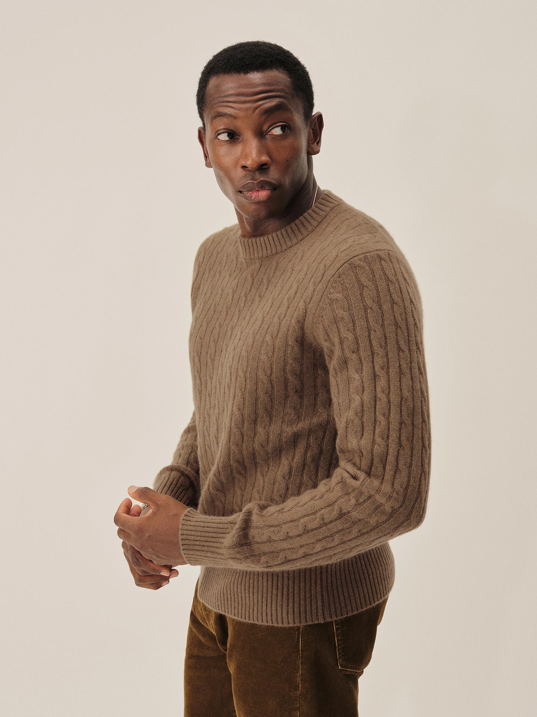 The California Cashmere Cable Crew is spun from 100% long-staple cashmere and knit in a refined 12-gauge cable pattern. Inspired by the casual poise of 1960s Ivy League sweaters, it’s finished with yarn-dyed ribbing at the neck, cuffs, and hem, and garment-rinsed for a soft, lived-in feel.