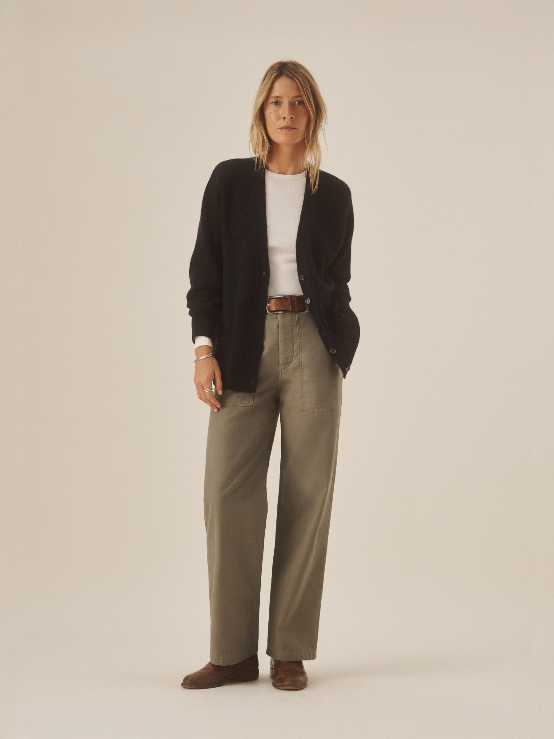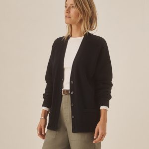 Inspired by vintage “grandfather” cardigans, a sweater made from 100% cashmere in a soft jersey stitch with natural drape and structure. Designed with an oversized fit and saddle armholes, it’s finished with rib trims at the cuffs and hem, functional buttons at the center front, and cleanly finished pockets.