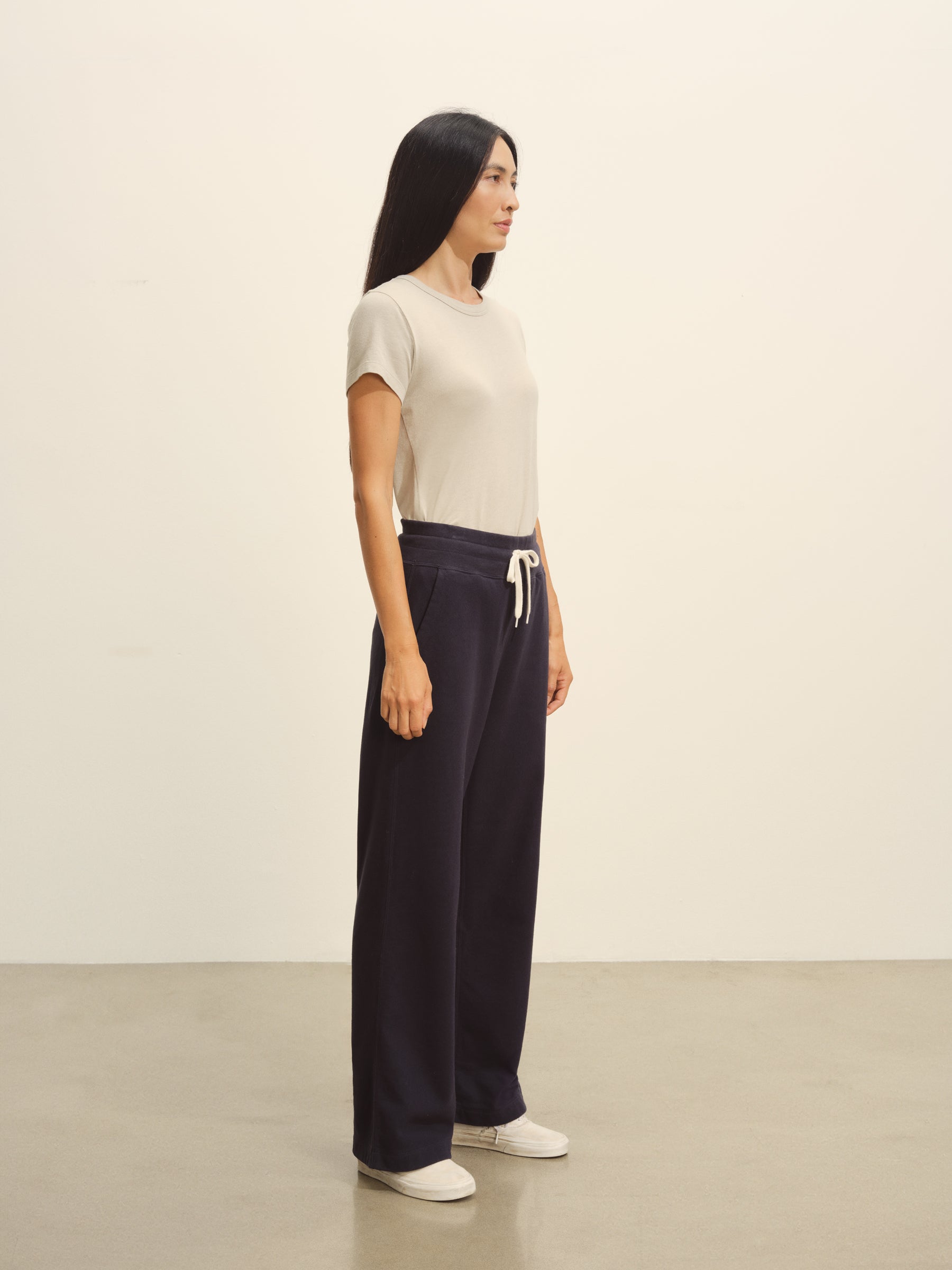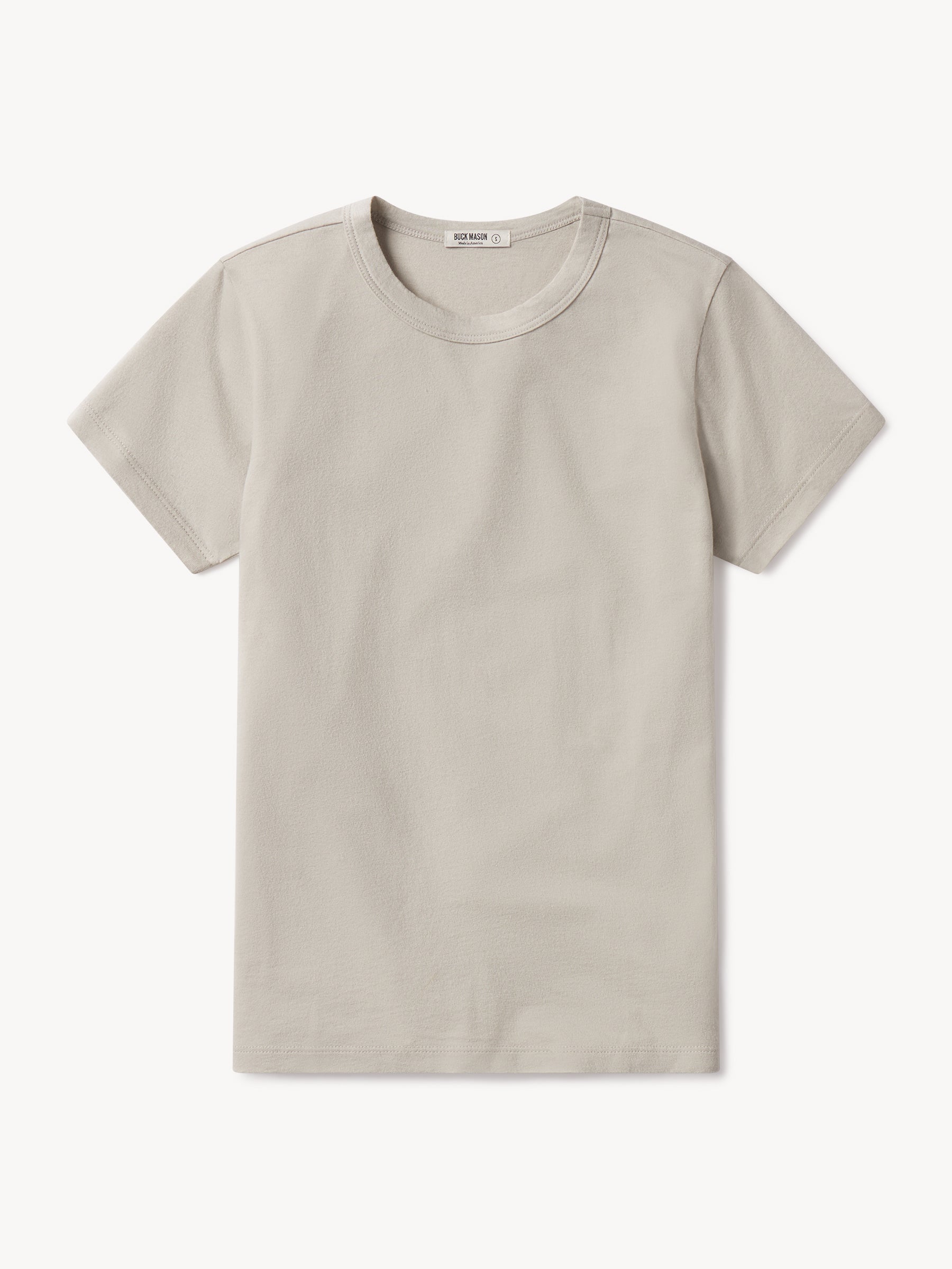 Slim fit crewneck tee cut from a supersoft 130 GSM blend of bamboo, cotton, and wool. Features a straight hem, a self bound neck, and raised armholes that hug the contours of the shoulders. Garment washed for a lived-in feel.