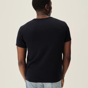 A fully fashioned tee that draws inspiration from the lifestyle surrounding Lake Como in the 1960s. Knit from an ultrafine blend of yarn-dyed organic Egyptian cotton and cashmere, spun in Italy. Featuring tubular finishes at the cuffs and bottom hem, and a shallow sleeve cap.