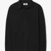 A popover shirt made from a midweight compact cotton jersey with a smooth, uniform texture and cool hand. It features a traditional shirt collar with a four-button half placket and single chest pocket. Ribbed sleeve cuffs.