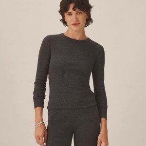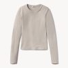 Slim fit crewneck sweater in a 24″” length, elevated in a 14 gauge variegated rib knit from a blend of merino wool, silk, and cashmere. Luxe, easy, and ideal for layering. Constructed with self-starting hem and sleeve trim and fashioning at the neckline and back shoulder for durability.