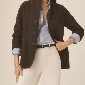 Classic fit chore coat with a slimmer cut through the arms and room in the torso for layering. This 340 GSM felted merino wool has been twice boiled for improved insulation and durability. Details include three patch pockets, horn buttons, and a notch collar. Constructed with hand-sewn facings and coverstitching throughout.