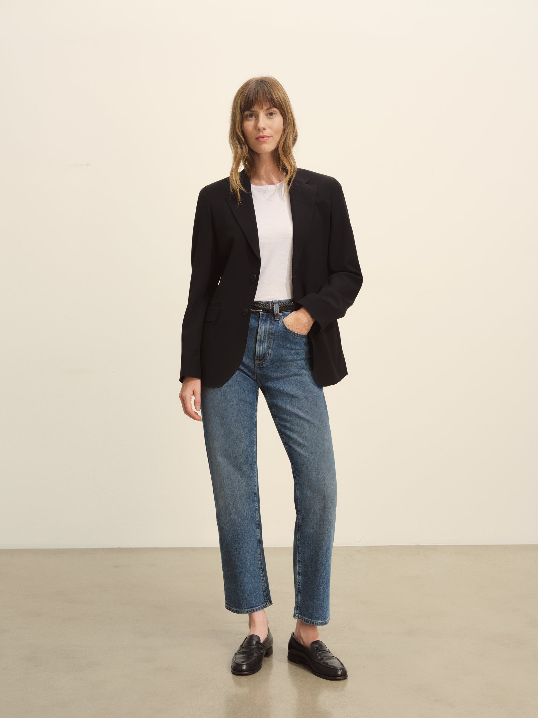 Expertly tailored and made to pair with matching trousers or denim, this jacket features all the true menswear-style details including two welt flap hip pockets, a welt chest pocket, single back vent and functional surgeons cuffs. It’s crafted from light and drapey 175 GSM fine Japanese wool with a 2/72 x 2/72 construction and fully lined for a smooth feel and easy drape. The natural shouldered silhouette is inspired by vintage 1950s menswear with a timeless fit and feel.