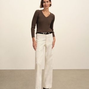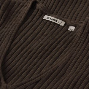 A vintage-inspired V-neck sweater with bracelet-length sleeves, crafted from premium Italian cotton yarn with a 3×3 ribbed structure for added stretch and a snug, flattering fit. Garment-washed for a truly authentic, worn-in feel.