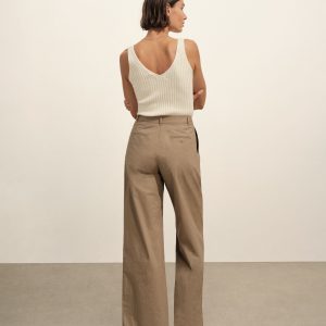 Slim-fit, vintage-inspired V-neck tank crafted from 100% Italian cotton yarn with a 3×3 deep rib structure. Designed with concealed chain threads and snaps beneath each shoulder to keep bra straps in place. Garment washed for a truly vintage, broken-in feel.