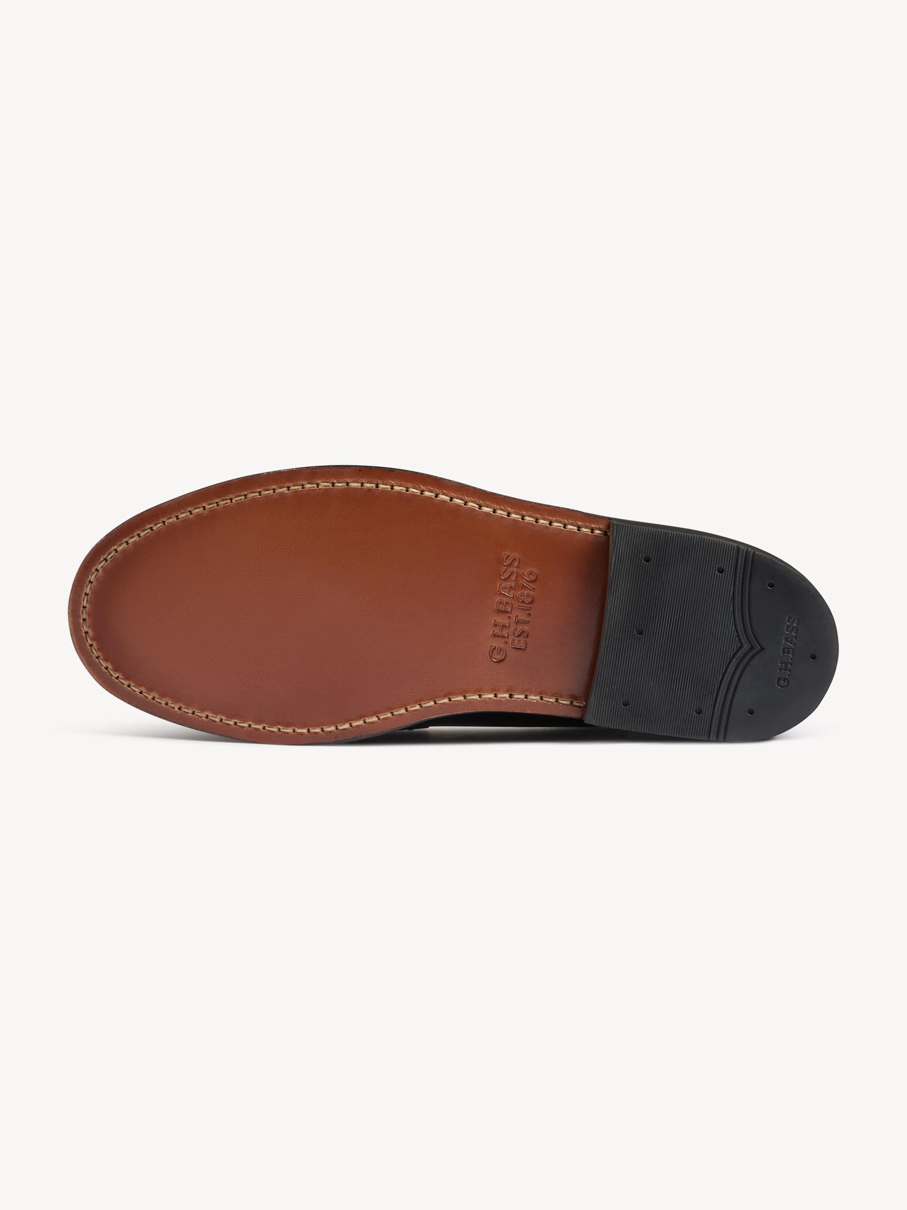 Our collaboration with G.H. Bass recuts the iconic Larson loafer in Horween’s renowned Chromexcel leather, featuring traditional moccasin construction, a handsewn toe, and a Blake-stitched sole. Ironed edges on the outsole, a decorative lip around the toe, and the distinctive ‘beefroll’ penny strap complete the look. Fully lined.