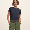 Military-inspired short sleeve henley, crafted from a superfine blend of new and recycled cotton with a subtle, textured rib. Featuring a three-button loop placket and sleeve cuffs. Finished with mother of pearl buttons and garment washed for a lived-in feel.