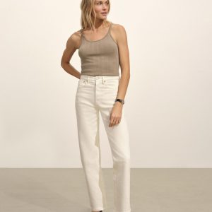 Slim-fit, vintage-inspired base tank made from a textured blend of 60% recycled cotton and 40% cotton. Features a scalloped scoop neckline, contrast rib binding, and discreet baby snaps at the shoulders to keep bra straps in place.