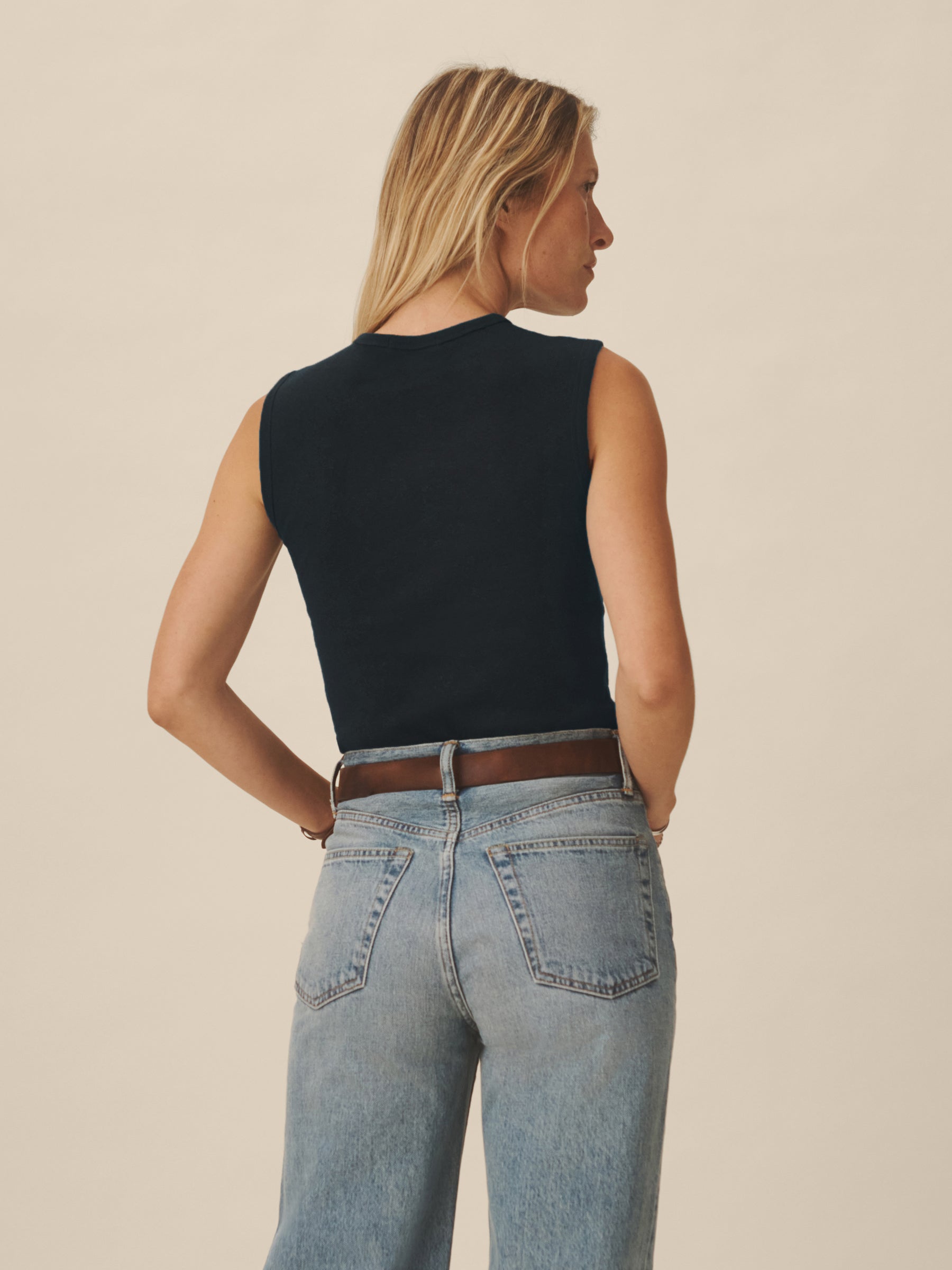Classic slim-fit, vintage-inspired muscle tank made from a textured blend of 60% recycled cotton and 40% cotton rib that holds its shape.