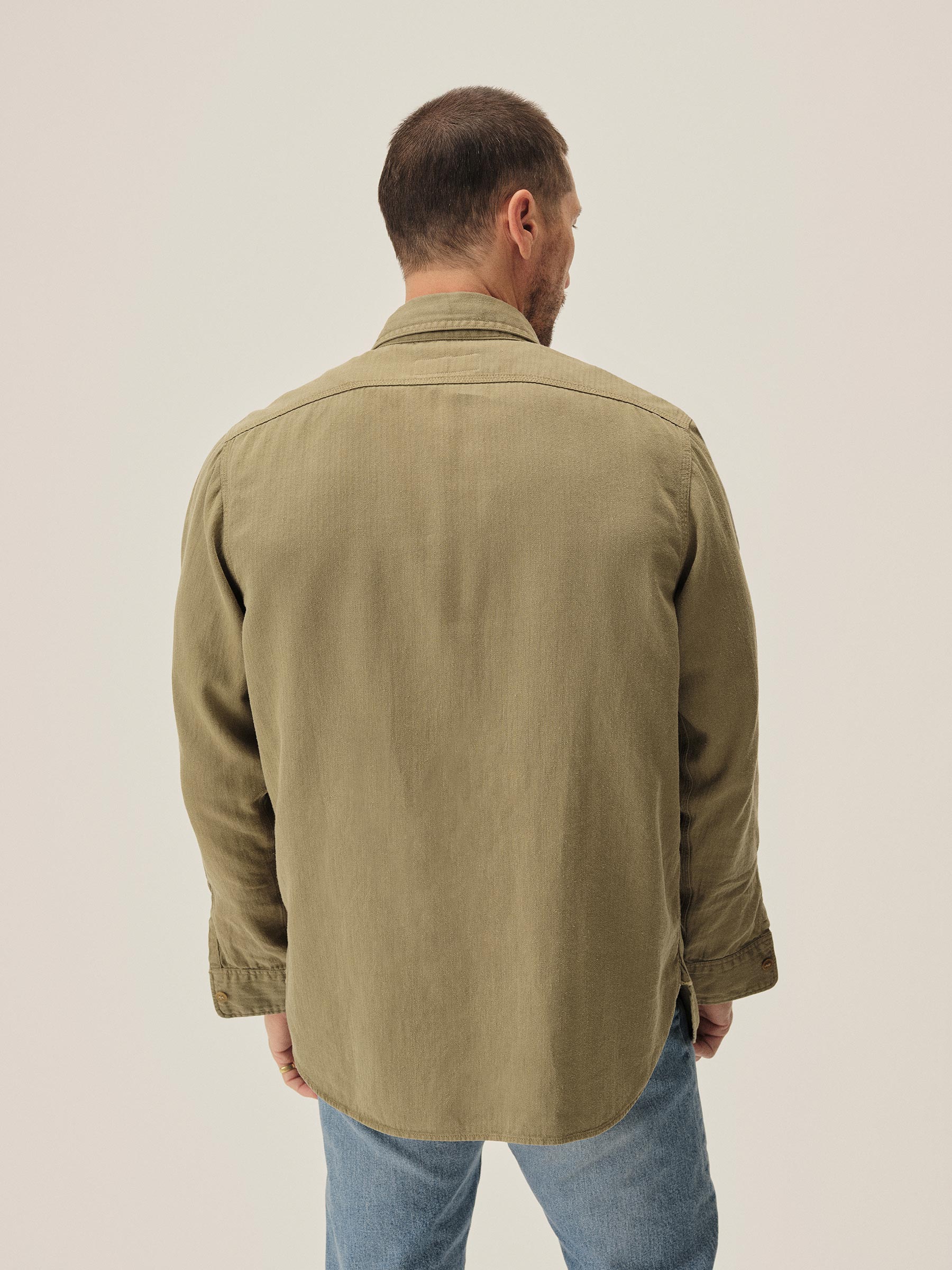 Born from the hardworking spirit of 1940s work shirts, the Soft Pack features a “cigarette pocket” at the chest and a narrow under-placket. Cut from a midweight, garment-dyed cotton/hemp HBT, and finished with a sun-fade effect, this shirt carries the weight of time.