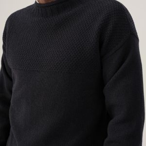 A nod to traditional fishman styles and workwear knits from the 1600s, our Guernsey Rollneck features a relaxed, slightly cropped fit in a comfortable 100% merino wool. Moss stitch upper body with rib finishes at cuffs and collar. Jersey roll at collar top edge with a garter stitch hem.