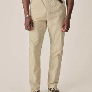 Our Herringbone Twill Field Pant pays tribute to the USMC work trouser turned WWII combat uniform, the P-41. “Repro” style fit with a high rise and full leg, cut from lightweight, 100% cotton HBT. Construction details include felled seams, 2 open back patch pockets, and bar tacks at points of stress. Stonewashed for a broken-in, vintage feel.