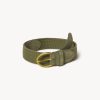 The Holdfast is modeled after the original U.S. Army “Mills” belt issued from 1904–1938 and commonly used through WWI. Cut from durable cotton webbing, it’s finished with a removable brass buckle for trimming to your exact fit or wearing long for a more relaxed style. Offered in alpha sizing, each belt can be easily customized to preference.