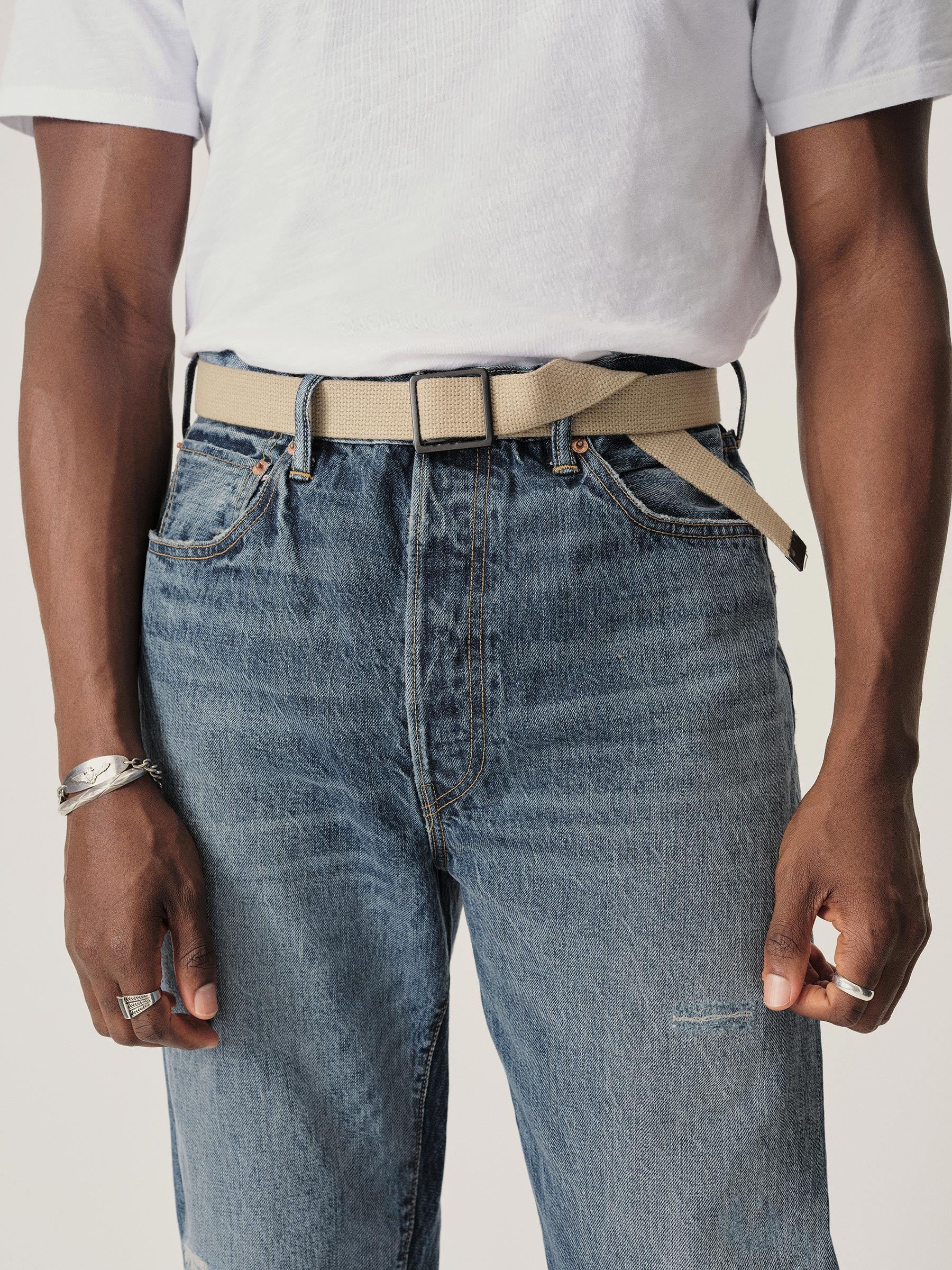 A classic 5-pocket jean in our Full Saddle fit: high-rise, straight through the thigh and leg. Inspired by blue jeans from the 1940s through the 1960s, this shuttle loomed 14 oz. selvedge denim is unsanforized, and has an organic texture that develops more character with every wear. Garment rinsed for a lived-in feel. Details include copper rivets and a metal tack button fly.
