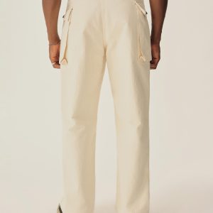 Inspired by the Herringbone Twill – or HBT – fatigue trousers worn by the US Army in WWII, these pants feature two cargo pockets high on the hips, close to the waistband. The pockets are made with an expandable gusset that allows them to keep a low profile while still being able to stow anything you need. The fit is relaxed with room in the leg and seat to accommodate the side pockets. The buttons are metal tack buttons featuring a 13-star design on the top – one for each of the original colonies.