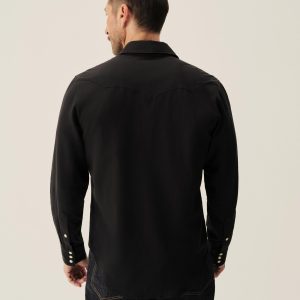 In the spirit of the ol’ Palomino, a classic fit western style shirt made from a springweight blend of cotton and wool, ideal for warm climates. The shirt has all the cowboy details like pearl snaps, a classic pointed yoke, five point pockets with pointed pocket flaps.