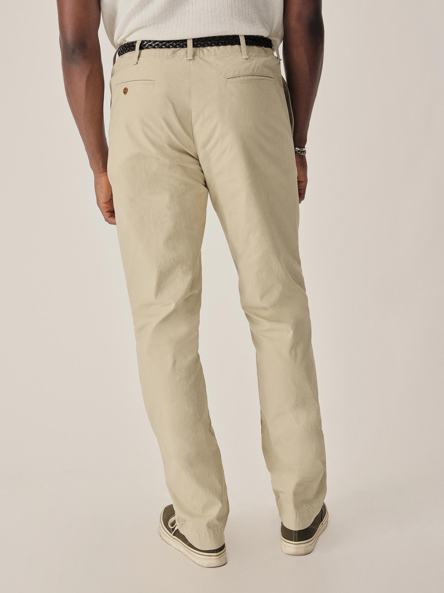 The classic officer’s pant in our Maverick Slim fit: mid-rise, slim through the thighs with a taper below the knee. Cut from 5.5 oz. cotton poplin with a crisp hand and light structure that’s suitable for warmer climates. Features a “Hollywood” one-piece waistband, slash front pockets, welted back pockets, and a welted coin pocket. Lined with a natural canvas interior and finished with corozo buttons. Garment-washed for a lived-in feel. Button fly.