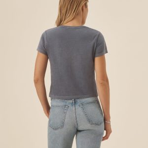Boxy short sleeve crewneck tee with a straight hem. Cut from 120 GSM Supima cotton. Constructed with rib neck binding and double-needle cover-stitching at the hem. Garment washed for a lived-in feel.