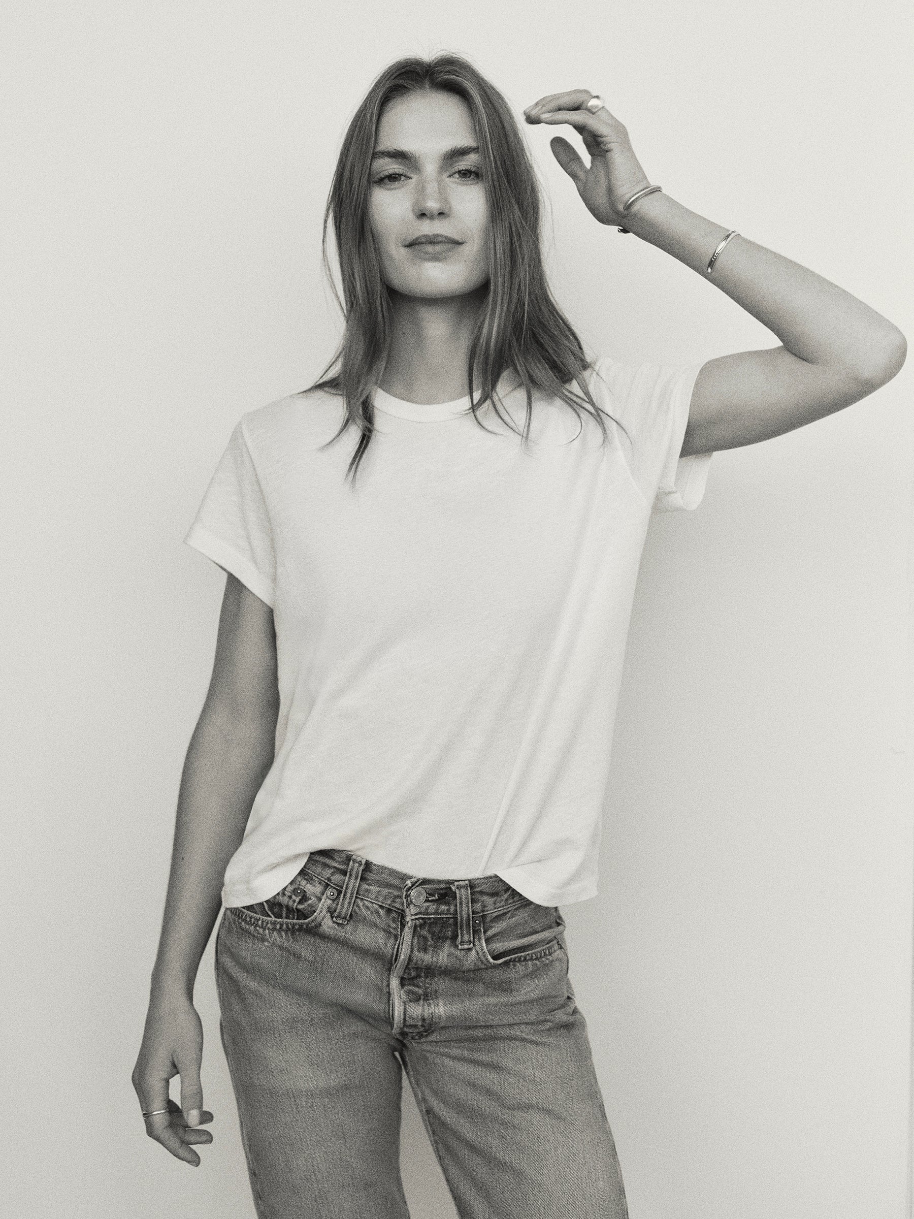 Classic fit short sleeve crewneck tee with a straight hem, cut from 125 GSM cotton with light slub texture. Constructed with self neck binding and ladder stitch detailing at the hems. Garment dyed and washed with softener for a lived in feel.