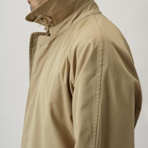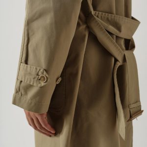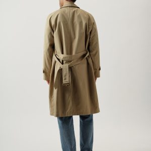 Relaxed, vintage-inspired trench coat cut from 5.7 oz yarn-dyed cotton/poly twill weather cloth with a DWR finish. Features patch and flap pockets, raglan sleeves, buttoned tab cuffs and throat, and a deep back vent. Includes a removable belt with leather buckle for cinching the waist.