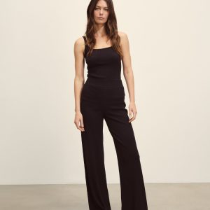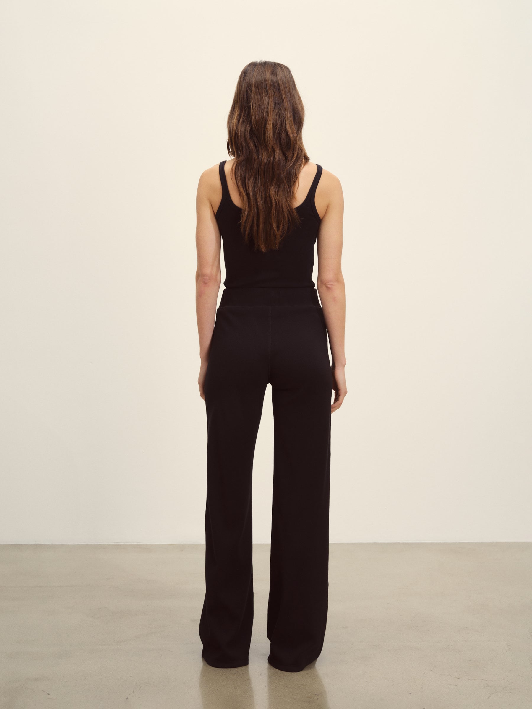Slim fit ribbed scoop neck tank cut from 295 GSM stretch cotton that holds its shape. 2×2 rib structure—two rows of rib stitch, two rows of jersey stitch—is offset by contrast 1×1 rib at the neck. Constructed with coverstitching throughout and flatlock stitching at the side seams. Garment washed for a lived-in feel.