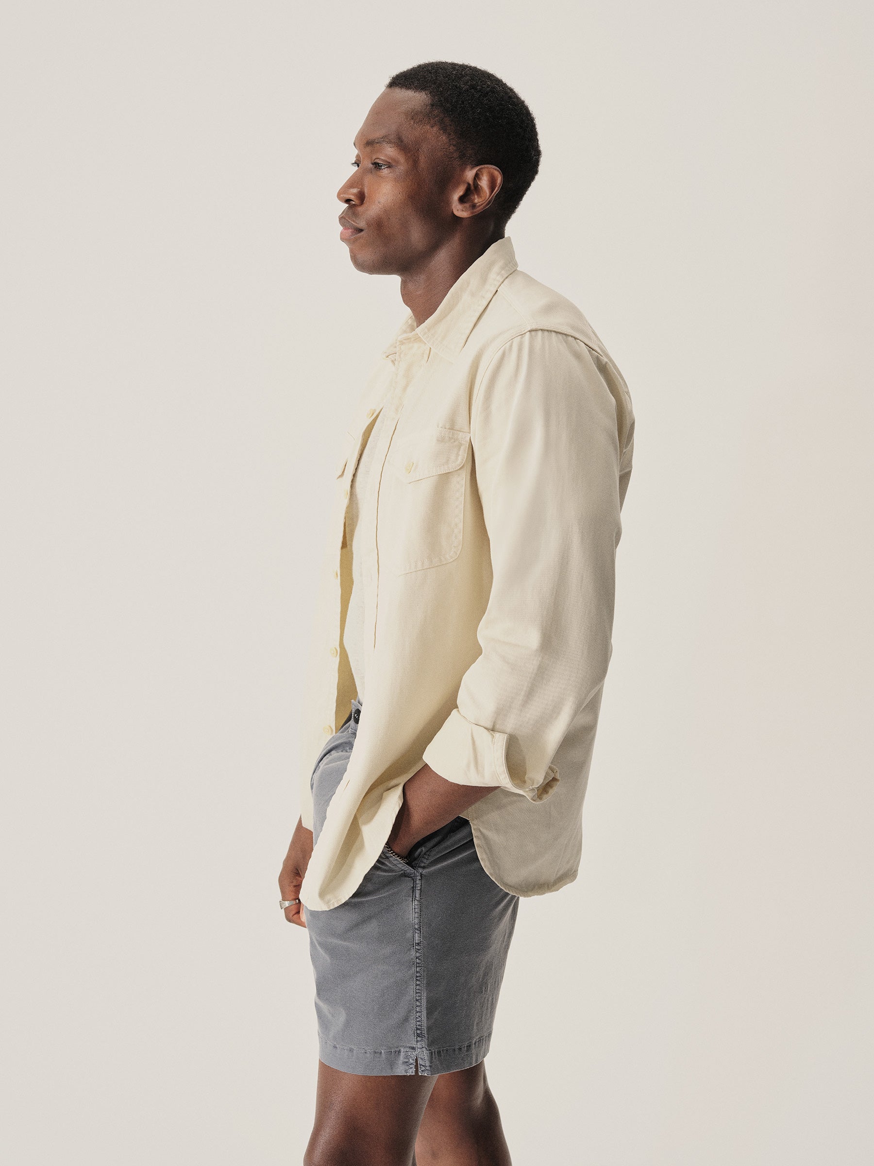 Inspired by a 1940s workshirt from our archives, this is the quintessential midcentury American workshirt. It has a classic fit, two flap chest pockets, and a curved hem. It is cut from a sturdy midweight cotton twill that will soften with every wear. Washed for a lived-in feel.